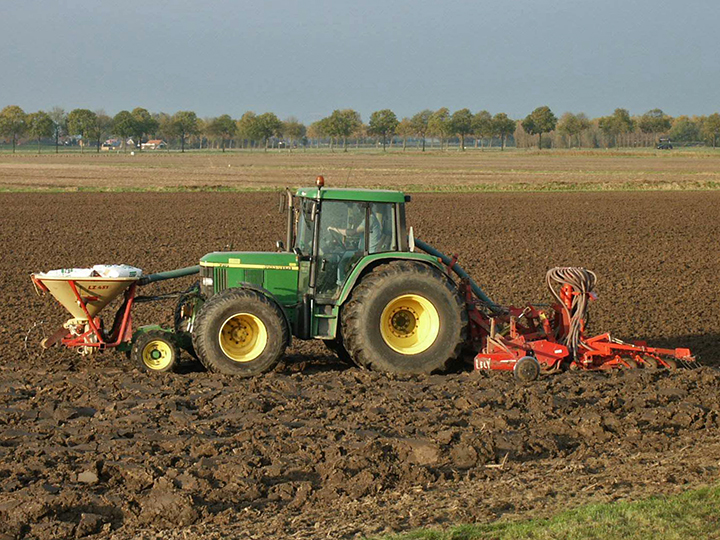 NH TS met 2 Sicma kopeggen en een Kongskilde zaaimachine.