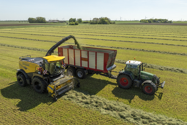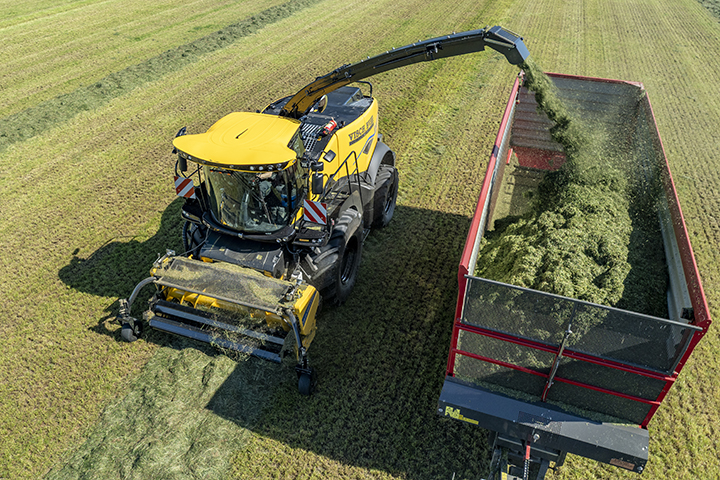 En hun gloednieuwe New Holland Forage Cruiser FR550 in de nieuwe styling.