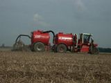 DF Agrotron K110 met een Grimme DL 1500 uienlader en MF 6290 met een Beco Super 1400 kipper.