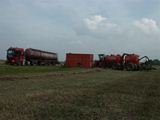JD 6110SE met een Amac G2 uienlader en Fendt 714 met Krampe kipper.