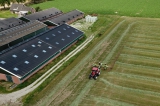 Loonbedrijf Jos Monden uit Etten-Leur harkt een snede gras bij elkaar.