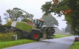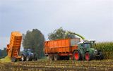Een onbekende hakselploeg aan het werk in het Vlaamse Essen. Hier een Landini met een omgebouwde vrachtwagen aanhanger.