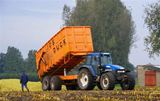 New Holland met een drie assige carrier van loonbedrijf Janssens uit Baarle-Hertog.