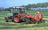 Fendt Farmer 308LS Turbomatik met een PZ Novex 500 hark.