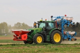 Loonbedrijf John van Pol heeft de eerste maïs er al inzitten en dus net te laat voor actiefoto's van deze John Deere 6145R met Kuhn Venta TF 702 fronttank en Monosem zaaimachine.