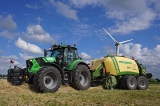 Graszaadhooi persen door een Deutz-Fahr Agrotron 7250 TTV met nieuwe Krone BigPack 1290 XC grootpakpers van loonbedrijf Firma Beekman uit Vaassen.