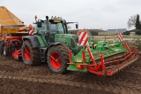 Fendt 712 Vario met Baselier FF 310 frontfrees, Tulip Roterra en Warrens Delta Planter Drill Ten.