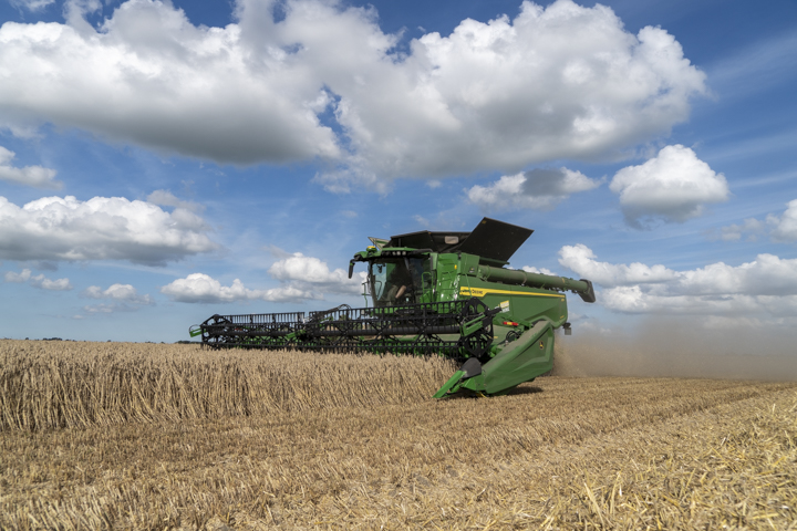 We keren nog even terug naar de imposante John Deere X9 1000 combine die inmiddels de kopakkers eraf heeft.