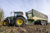 In de achtervolging een John Deere 6215R met Krone GX 520 rolbandwagen. Ook deze multifunctionele wagen is dit jaar nieuw aangeschaft.