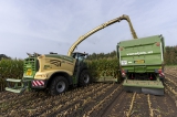 De Krone Big X 780 OptiMaize heeft er een EasyCollect 903 voorzetstuk voor hangen.