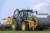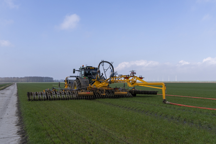 Drie verschillende loonwerkers zien we aan het werk met de sleepslangbemester in deze serie, gemaakt in Flevoland. Loonbedrijf Dekker uit Putten en Verhoef uit Nijkerk gebruiken bij een JD met Tjalma combinatie. De derde is iets heel anders.