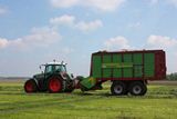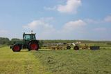 Door de klant werd zelf geharkt met een Fendt Farmer 307C met Claas Liner 1250 hark.