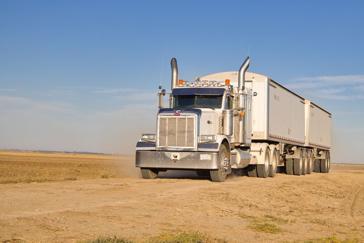 Western Star onderweg naar de schuur met een vracht aardappels.