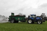 Met een New Holland T7.270 en Tebbe MS 140 breedstrooier.
