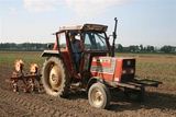 Fiat 55-90 met Kongskilde schoffelbalk van Henk van der Linden bezig tuinbonen te schoffelen.