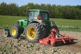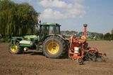 kapucijners zaaien met een omgebouwde JD 6410 trike met Herriau Turbosem zaaimachine van loonbedrijf Hack uit Kruisland.