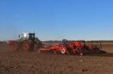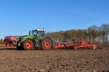Door hun Fendt 1050 Vario en nieuwe Horsch-combinatie. Voorin een Partner 1600 FT fronttank. Achter een Tiger 6 AS met kouterbalk.