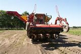 Hiermee rooien ze plant en zaaiuien op teeltbedden van 2.25m.