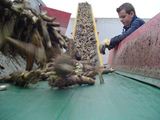 Lossen op het erf. Nadat de witlofwortels over een speciale stortbak zijn gegaan komen ze hierna over een extra reinigingsunit van Breston voor ze in de vrachtwagen beladen.
