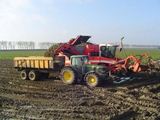 Omdat er in Brabant werd gerooid waren een aantal kipper-combinaties nodig zoals deze JD 6310 met zelfbouw vier wielige wagen.