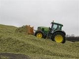 JD 7400 hakselaar met JD trekker en Weeks silagekipper.