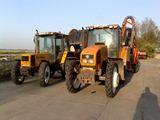 De najaarsploeg van 2009 voor het rooien van de gladiolen en planten van tulpen met v.l.n.r: Ares 556rz met Beco Super 1200 kipper, Ares 610rz met Beco Super 1200 kipper, Ares 550rx met Beco Super 1200 kipper, Ares 556rz met plantmachine, TX 85-34 met hefmast, TX 80-14 met greppelfrees, 751.2 LS met loofklapper en Renault 551.