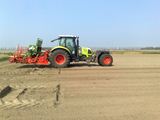 Eerstejaars plantuien zaaien met een Claas Arion 530 trike, Lely kopeg en zelfbouw/Amazone zaaimachine van loonbedrijf Van Dun uit Rutten.
