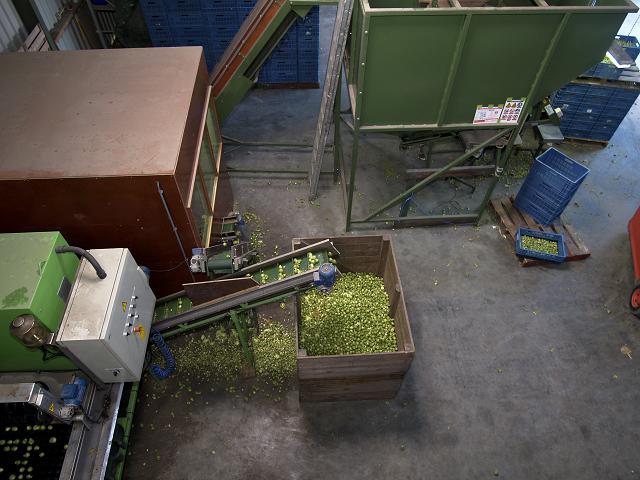 Alles wat deze laatste controle niet goed passeert, komt ook via een band in de afvalkist terecht, terwijl de goede spruiten op een band komen die hen naar een silo voert van waaruit verder transport wordt geregeld.