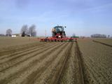 Het zaaien, van de RoundUp resistente bieten, gebeurt met de Landini Vision 100 en een 12 rijige Accord Monozentra zaaimachine.