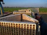 Een paar dagen voordat Leen met het poten van zijn spruitenplanten zou beginnen belde hij mij op. We hadden afgesproken dat ik bij die eerste plantjes aanwezig zou zijn om de hele cyclus van de spruitte kunnen volgen. Een straffe noordooster maakte het toch aardig koud, die vroege ochtend in de Sint Annapolderin Rockanje. Maar het licht was prima en de sfeer uitstekend. Wat wil je? Wie zit er nou spruiten te plukken vanaf een Ferrari! Een kleine 96.000 plantjes, lichtgroen tegen de zon afstekend, stonden klaar om in de grond gestopt te worden. Langzaam maar zeker begonnen de lijnen zich in het land af te steken. Het heeft wel iets, dat jonge grut in de grond, op weg naar de eerste pluk over een half jaar.