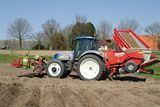 NH T6070 met Baselier FF310 frontfrees en Grimme GL 34 K aardappelpoter van akkerbouwbedrijf Van 't Westende uit Klundert.