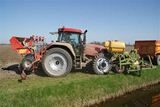 Case IH CVX 140 met Baselier FF310 frontfrees en Gruse aardappelpoter.