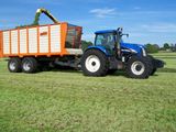 Krone Big X 500 hakselaar samen met een New Holland TG 285 met Kaweco Radium 50 silagewagen van Mts. Bezu uit Een.