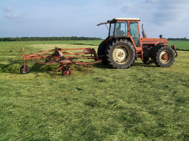 Renault 921-4 met een Niemeyer hark, van hetzelfde bedrijf.