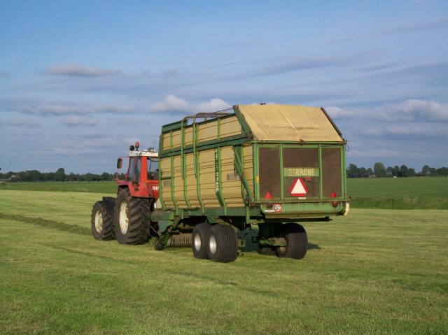 Steyr 8150 met een Krone Titan GL 48 All In opraapwagen, ook van Kwakernaak.