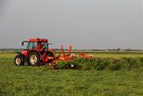 D-F Agrofarm 100 met een Lely Hibiscus 725 CD hark.