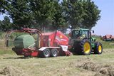 Rondebalen persen en wikkelen door loonbedrijf SvZ (Van der Sluijs & Van Zielst) uit Oude-Tonge met een John Deere 6830 en Lely Welger RP 235 Profi perswikkelcombinatie.