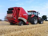 Case IH CVX 1170 met een Lely Welger RP 535 rondebalenpers.