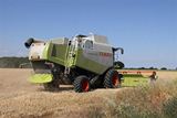 Claas Lexion 580+ Terra-Trac met een V1050 (10,5m/35') maaibord.