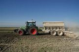 Fendt Farmer 412 Vario met een Amazone kalkstrooier van loonbedrijf Van Ginneken uit Den Hout.