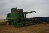Rijdend lossen bij een MF 6480 met Marston trailer.