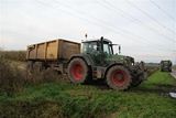 Fendt 820 Vario met een Peecon CARgo 18000 kipper.