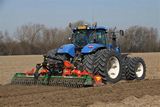 Dus waarom niet op cultuurbanden met voorop de frees (rij je niet over bewerkte grond waar de aardappels komen) en achterop de planter of... op brede banden met niets voorop en achter de frees+planter?