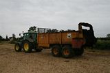 Mest strooien met een Ford 7840 en Richard Western meststrooier. Er wordt geladen met een Volvo BM 4200 shovel.