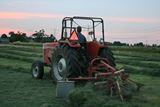 MF 265 met PZ HS 360 hark.