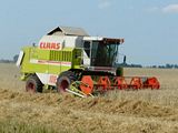 Claas Lexion 460 van landbouw en loonbedrijf Westerhof uit Woldendorp die lost bij een International 1455xl met Joskin 16BCL kieper.