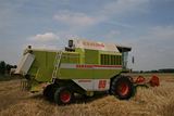 De machine wordt geholpen door een Claas Dominator 98sl.