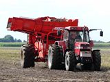 Voormalers (vroege zetmeelaardappelen) rooien door landbouw & Loonbedrijf Albers uit Zandberg bij akkerbouwbedrijf Eikens uit Zandberg met een Case International Maxxum 5130 met een Grimme DR 1500 rooier en Same Explorer 70 met Cebeco tandemas kieper.