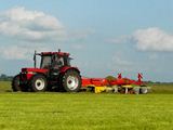 Het harken gebeurd met een Case International 1056xl met Pöttinger Eurotop hark.