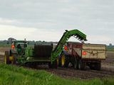New Holland 8160 met een Grimme KS1500A frontloofklapper en Grimme DR 1500 rooier. Voor het transport is er een NH 8260 met Vaia NL/100-4R 12t kipper. Beide combinaties zijn van landbouw & Loonbedrijf Jager uit het 2e Exloërmond.